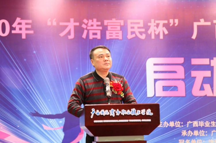 蒋瀚洲主任表示,今年面对经济下行和疫情的双重压力,全区高校扎实工作,开拓进取,共同努力,2020年广西高校毕业生就业工作取得非凡成绩。此次举办2020年“才浩富民杯”广西大学生新媒体公益创业大赛,目的是为了全面推进我区大学生互联网新媒体创新创业工作,以创业带动就业,实现我区高校毕业生更充分更高质量的就业。大赛以“创业实战,全真模拟”为主题,为我区高校学子提供与社会互动互利、求知求学的新模式,培养参赛者的团队精神、协作意识和责任感以及创新思维,提高高校毕业生的就业竞争力。