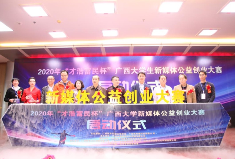 12月28日,2020年“才浩富民杯”广西大学生新媒体公益创业大赛启动仪式在我院学术报告厅隆重举行。