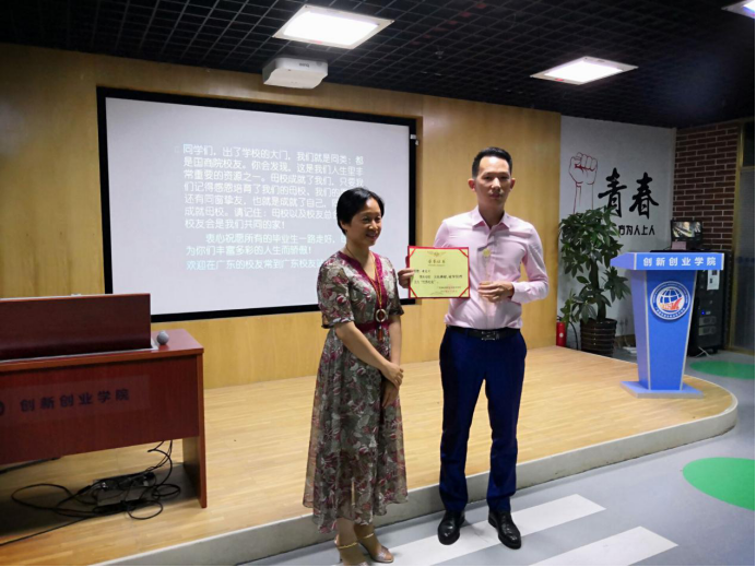 招生就业处副处长罗兰芬为校友颁发荣誉证书
