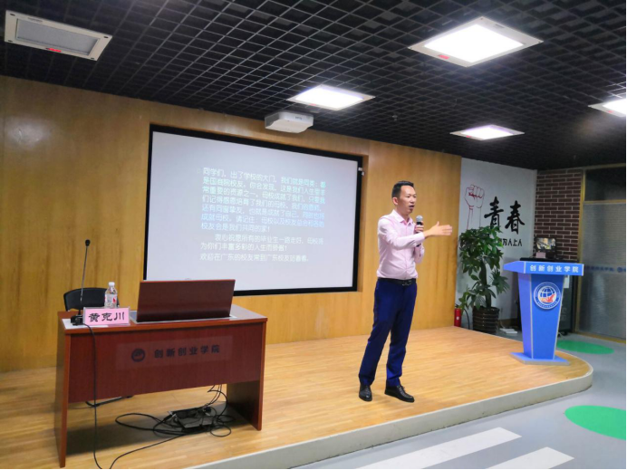 黄克川为同学们带来“创业燃烧激情,实践铸就成功”主题分享讲座,他用平实、质朴的语言讲述了自己坎坷荆棘、从无到有十几年的经历,以及对成功、对人生的感悟。他2001年从母校毕业后碾转做过多份业务员工作,卖过保健品、家具、牙刷,一无所成;再次在多家办公家具公司做业务,业绩不佳,艰苦的工作环境,每月却拿着微薄的薪水。2007年他毅然辞职开始创业,怀着4万元,与同学合伙创业,当时电子产品(MP3)热潮来到,一边做钮扣一边做电子产品。责任与担当把他逼到绝境,唯有破釜沉舟自己开辟一番天地。从一个人的单打独斗,到2013年的成立广州三科钮扣有限公司,再到2018年完成销售额3300万人民币。目前公司主要有BURBERRY,COACH,C&A等客户的订单,在行业内有较强的竞争优势,在国内外业界都有相当知名度。