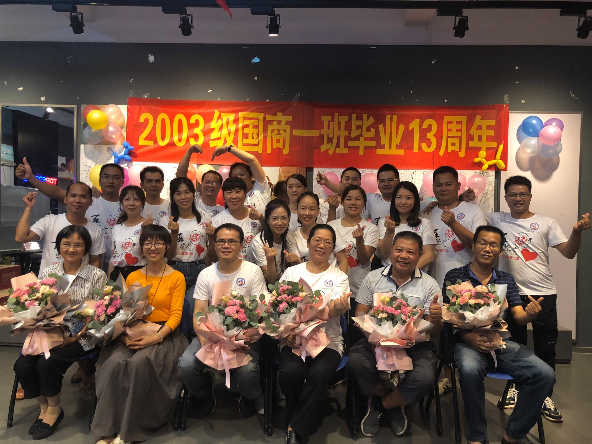 2003级国商一班校友与老师们合照